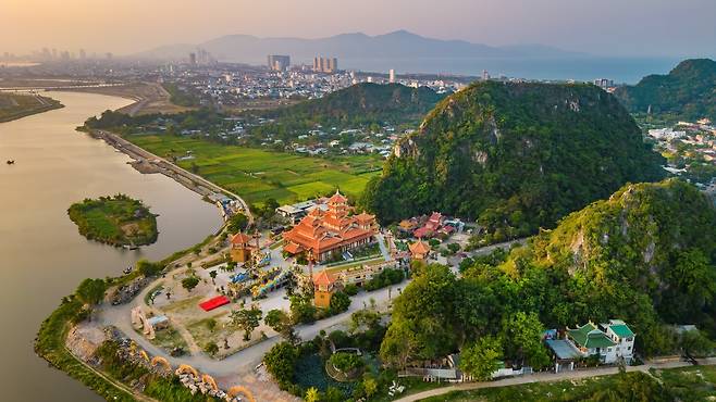 다양한 색의 대리석 봉우리가 아름답습니다. 산 정상에서 바라보는 다낭의 전경은 아름답고 숨막힐 정도입니다.
