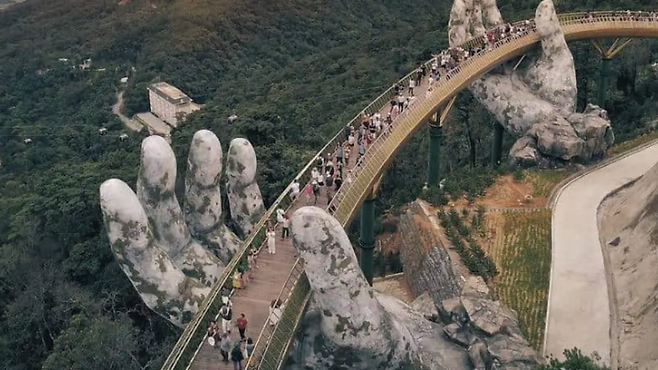 세계에서 두 번째로 긴 케이블카를 타고 올라가면 다양한 테마파크와 호텔, 전망대 등이 있어 하루 종일 즐길 수 있습니다. 특히 '골든 브릿지'는 손에 의해 지탱되는 듯한 모습이 유명합니다.
