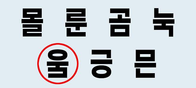 아래 7개의 글자 중에 나머지와 다른 1글자를 찾아주세요.