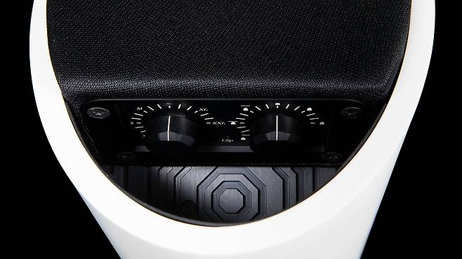 또 다른 특징은 바로 이 스피커가 슬림하지만 저역 능력은 대단하다는 것이다. 실로 믿어지지 않는 수치인 14Hz까지 내려간다. 50Hz 이하는 사실 청각으로는 듣기가 쉽지 않고 풍압만으로 감지할 수 있는 터인데 14Hz라니. 게다가 이 강력한 저역은 방의 크기와 용도에 따라 얼마든지 상부의 노브로 조정할 수 있다는 것도 장점이다.