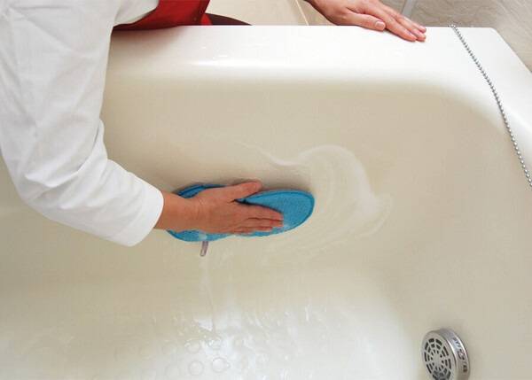 모든 재료를 섞어 10분 방치 후 닦아내면 화장실이 새것처럼 변한다.