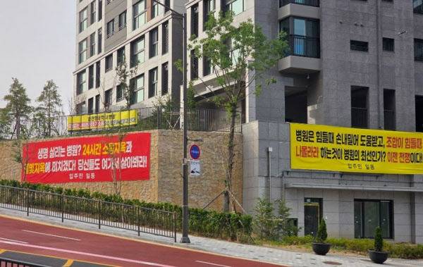 반면 아파트와 병원 측이 대화로 문제를 해결해야 한다는 의견도 나온다.