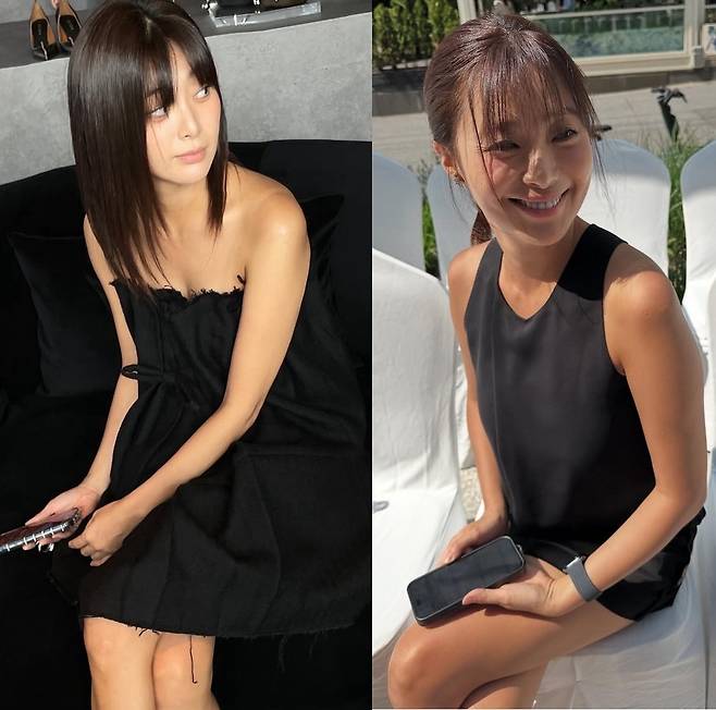 두 스타일 모두 액세서리는 최소화했으며, 자연스러운 헤어와 노메이크업에 가까운 스타일로 고급스러운 담백함을 유지했습니다.