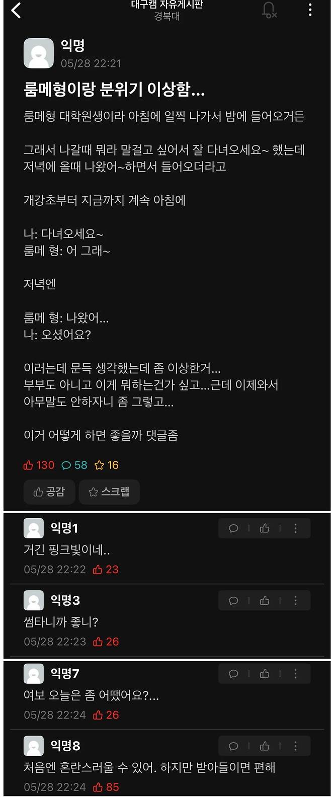 룸메형이랑 분위기가 좀 이상하다는 남자