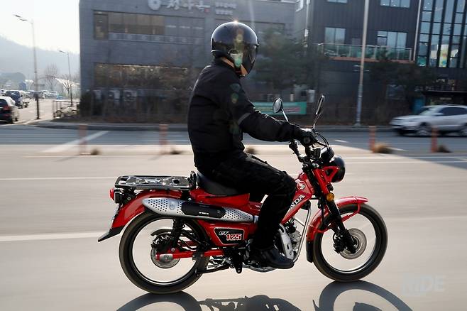 그래서인지 일반 도로에서는 C125에 비해 다소 가속감이 아쉬운 느낌이다. 오히려 슈퍼커브 110에 더 가까운 느낌의 가속력인데, 사실 배기량으로 보나 성능 수치로 보나 미미한 수준이어서 나란히 놓고 비교하는 것이 아니라면 그 차이를 느끼기 어려울 것이다. 그래도 일반도로를 달리는 것이 불편할 수준은 아니므로 부담 갖지 않아도 된다. 오히려 슈퍼커브 110이나 C125보다 나은 점은 연료탱크가 5.3L로 더 크기 때문에 1회 주유로 갈 수 있는 거리가 더 길다는 점이다. 슈퍼커브 110이 4.2L, C125가 3.7L인데 그보다 크게 설정한 것은 이 모델이 여행, 모험에 좀 더 초점을 두고 있다는 의미다.