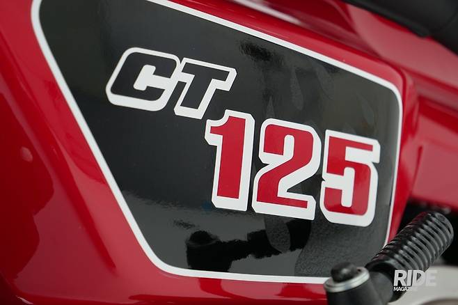 우선 엔진은 124cc 공랭 단기통이 탑재되어 최고출력 9.1마력/6,250rpm, 최대토크 1.1kg‧m/4,750rpm의 성능을 낸다. 이를 보고 C125와 같은 엔진이라고 생각하면 안되는 것이, 기본 구성, 실린더 규격 등 기본 요소들은 동일하지만, C125는 좀 더 고회전에서 성능을 내도록 세팅된 반면, CT125는 그보다 낮은 회전수에서 발휘된다는 차이가 있다. 일본 본사의 홈페이지에서도 C125의 엔진 형식은 JA58E로 표시하지만, CT125는 JA65E로 표기하고 있어 각각의 특성에 맞춘 엔진을 사용한다고 이해하면 된다.