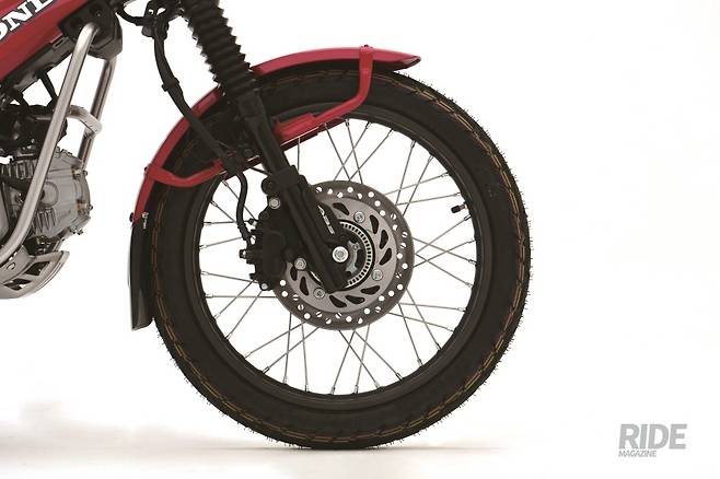 우선 기본 주행감은 일반 슈퍼커브와 앞뒤 17인치 휠 구성이 동일하니 크게 다르지 않다. 다만 기본 장착된 타이어가 블록 패턴이 강조된 오프로드 성격의 제품이라 미끄러짐이 덜해 훨씬 안정적이다. 제동은 앞뒤 모두 디스크에 1채널 ABS가 더해졌지만, 오프로드에선 뒷브레이크를 보다 많이 사용하게 되니 널찍한 브레이크 페달이 반갑게 다가온다.