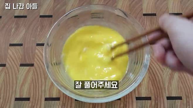 계란 3개 정도를 풀어줍니다. 골고루 잘 풀어서 준비해두세요.