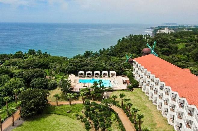 전 객실이 바다 전망인 이곳은 넓은 창을 통해 제주 남쪽 바다를 시원하게 조망할 수 있어, 창문만 열어도 제주 여행이 완성됩니다. 특히 객실 내 전용 자쿠지와 야외 공용 수영장은 피로 풀기에는 두말할 필요도 없죠.