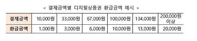 환급은 디지털 온누리상품권(모바일·카드형)으로 결제한 소비자에게 회차별 누적 결제금액의 최대 10%를 동일한 디지털 상품권으로 환급해 주는 방식이다. 매주 일요일부터 토요일까지를 1회차로 정해 운영한다.