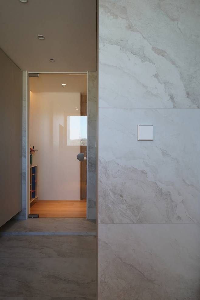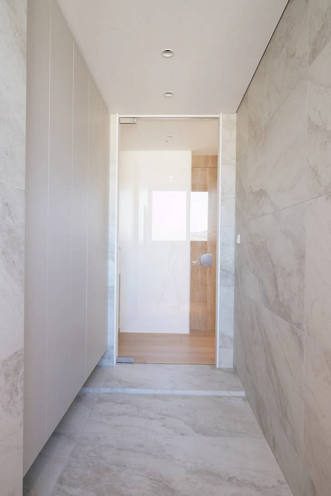 현관은 최대한 깔끔한 느낌을 주고 싶었습니다. 원래 전체 타일을 할 생각이 없었어요. 그런데 자재투어 중 너무 맘에 드는 이 타일을 발견하고, 현관에 좀 웅장한 느낌을 주면 어떨까라며 업체 대표님과 디자이너님, 저랑 남편 모두 만장일치로 의견이 모여 저희 집 타일 중 가장 비싼 몸값을 자랑하는 이 타일을 현관에 적용하게 되었습니다.