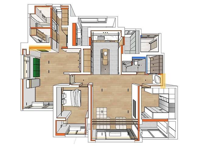 저는 취향이 명확한 편이라, 사실 공간별 용도, 사용하고 싶은 자재, 가구, 가전 등은 미리 다 선택이 되어 있어서, 모든 요소들을 어떻게 한 집에 잘 녹일 수 있을지에 대한 고민을 함께 많이 했습니다.