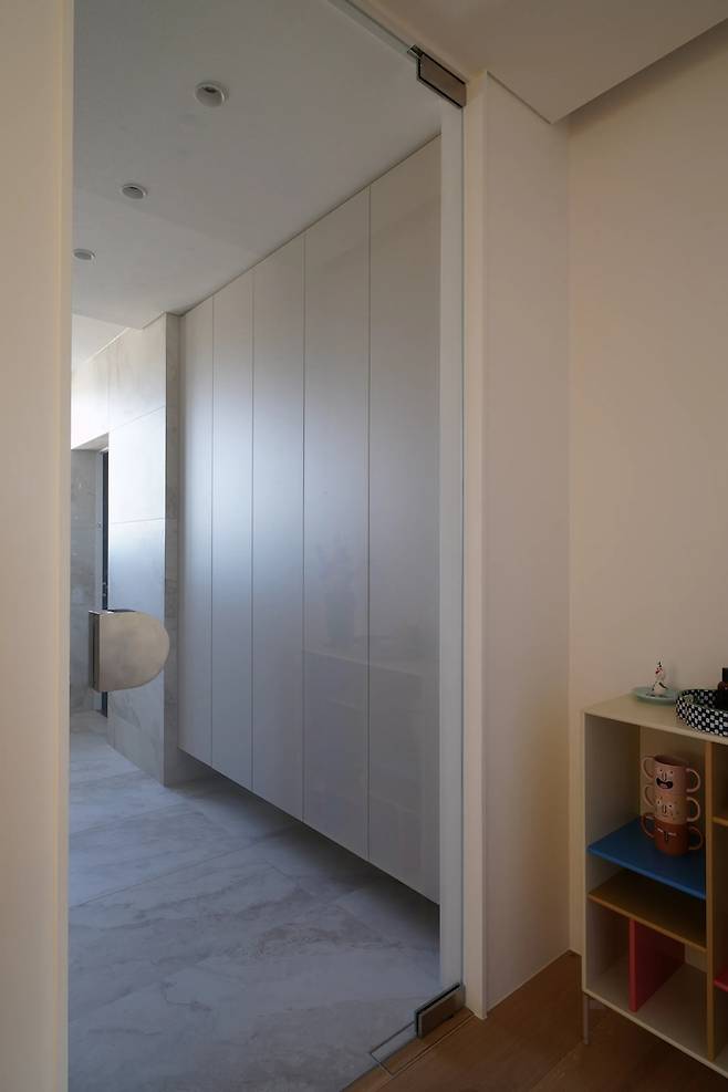 중문은 상업공간의 느낌을 내기 위해 강화유리도어로 시공했고, 무게감은 있지만 공간에 확장감과 시원함을 주어 만족스러운 선택입니다.