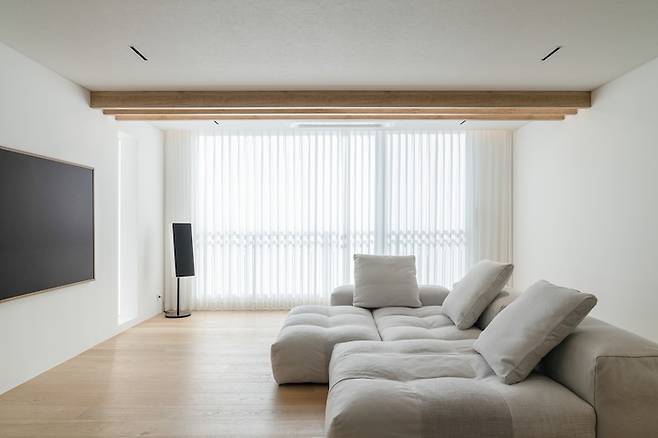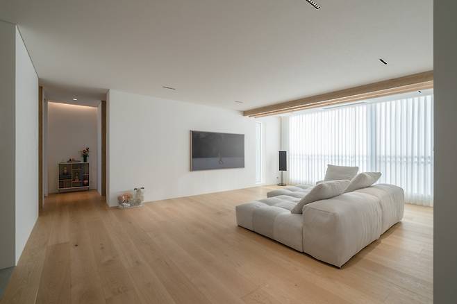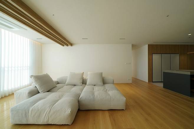 거실은 사실 전형적인 소파와 TV의 대면형태를 탈피하고 싶었어요. 고민을 거듭한 끝에, 저희 라이프스타일에 맞게 집을 만드는 게 가장 중요하다는 생각이 들었습니다.