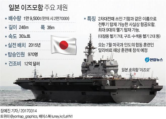 최근 일본은 헬기 탑재형 호위함인 '이즈모(いずも)'급을 개조하여 사실상 항공모함으로 운용하려는 계획을 발표했습니다.