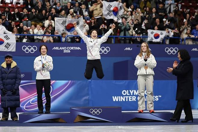 그의 가슴에 걸린 세 개의 메달은 단순한 기록 그 이상이다. 여자 1500m와 3000m 계주를 제패하며 시상대 가장 높은 곳에 섰고, 1000m에서도 끝까지 포기하지 않는 레이스로 값진 동메달을 추가했다. 특히 선배 최민정과 함께 결승선을 통과하며 보여준 압도적인 레이스는 이번 대회 최고의 명장면으로 남았다.