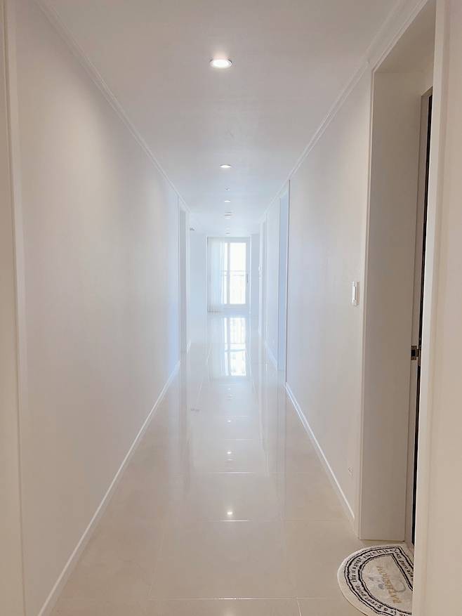 그리고 저희 집은 중문을 안 했는데요. 일단 살아보다가 필요하면 하자는 마음으로 중문 없이 인테리어를 진행했는데, 긴 복도 덕에 거실과 현관까지의 거리가 멀어서 겨울에 찬바람이 딱히 들어오지도 않고 바깥 소음도 전혀 없어서 굳이 필요하지 않더라구요. 덕분에 현관에 딱 들어왔을 때 탁 트인 느낌이 들어서 좋아요.