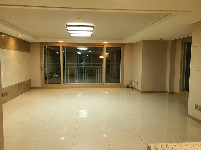 분양 당시부터 거실과 복도에 폴리싱 타일이 깔려져 있었어요. 사실 전 포쉐린 타일을 더 선호하는 편이라 다 철거하고 포쉐린으로 바꾸고 싶은 마음이 굴뚝 같았으나 마루 철거보다 타일 철거는 더더더더 대공사라서 기존 타일을 살리기로 결정했습니다.