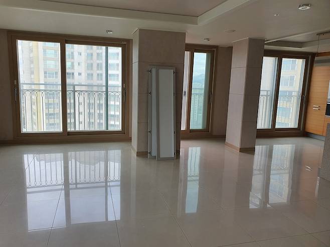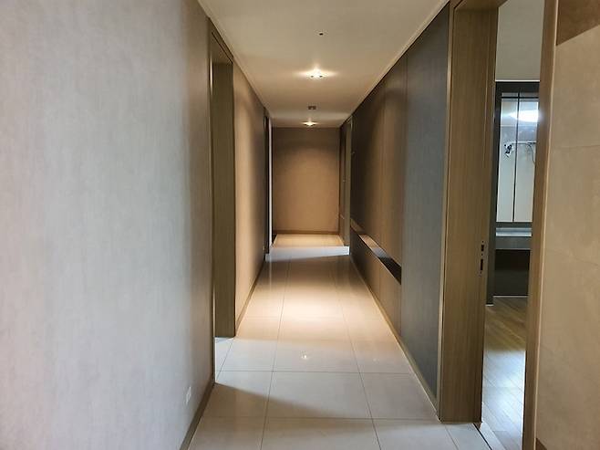 저희 집은 142 제곱 미터의 43평 형인데요. 평수 마다 구조가 아예 달라서 고민을 조금 했지만, 저희 평형의 긴 복도와 넓은 거실, 타워형 ㄱ자로 되어 있는 창에 반해서 선택하게 되었습니다.