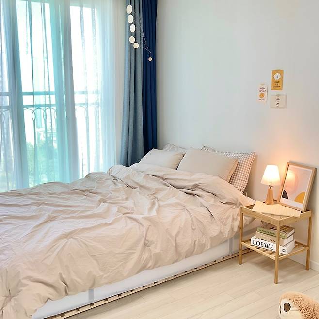 이사 오기 전엔 아이가 어렸어서 안방에 큰 패밀리 침대를 놓고 세 가족이 함께 잤는데 이사 오면서 부터 잠자리 독립을 시켜야겠다고 마음먹었던 터라 아이 침실을 따로 만들었어요. 방에 책상 하나 침대 하나 있는 전형적인 아이방 말고 자는 방과 공부방(또는 놀이방)을 따로 배치해서 온전한 쉼의 공간을 만들어주고 싶었거든요.