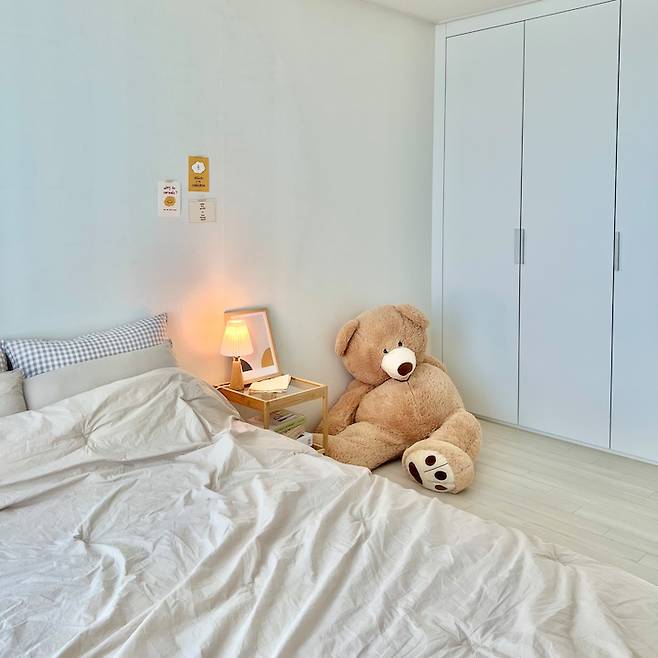 지금 생각하면 탁월한 선택이었어요. 그림이나 엽서 같은 소품들로 방 분위기를 자유롭게 바꿀 수 있으니까요. 그리고 대략 6년 뒤 아이가 중학생이 되었을 때를 생각하니 중딩 방에 민트색 벽지? 하늘색 벽지? 는 좀... 아닌 것 같아요 ㅋㅋㅋㅋㅋ