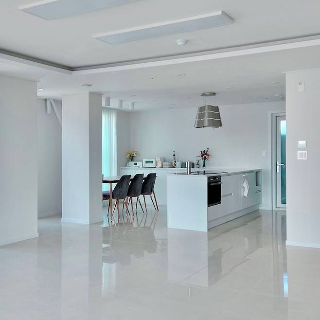 그런데 막상 지내보니 빛이 반사되어서 반짝 반짝하고 집이 더 밝아 보여서 좋더라구요. (발자국이 잘 남는것만 빼고요....ㅋㅋㅋㅋ)