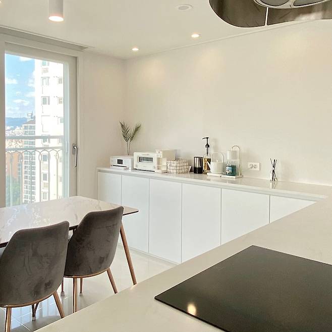 그리고 가족들을 보며 요리를 하는 대면형 주방이 저의 로망이었거든요.(ㅋㅋㅋㅋㅋ) 위에서 말씀드렸지만 저희는 디자인 업체와 진행한 게 아니어서, 디자인 요소나 레이아웃 변경은 오롯이 저희가 구상해야 했어요.
