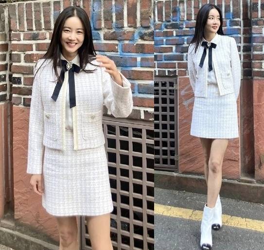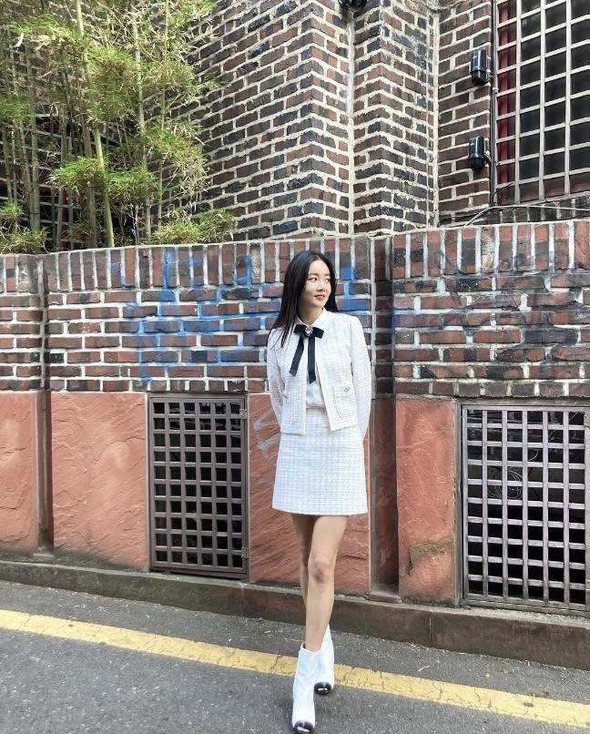 배우 황우슬혜가 클래식하면서도 여성스러운 분위기의 트위드 셋업 룩을 선보였습니다.