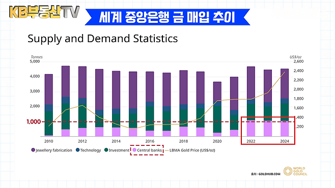 첫 번째는 2008년 글로벌 금융위기 때 각국에서 엄청난 양의 화폐를 발행하면서 추후 화폐가치가 크게 하락할 수 있을 것에 대한 우려로 금을 사들이기 시작한 것, 두 번째는 2022년 러시아의 우크라이나 침공 당시 미국이 러시아에 가했던 경제적 제재인 ‘스위프트 제재’가 큰 영향을 끼친 것이라 말합니다.