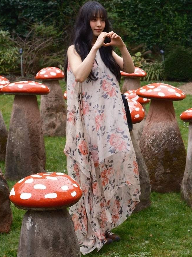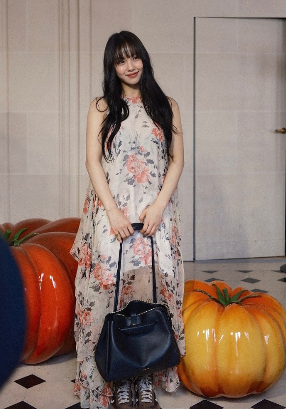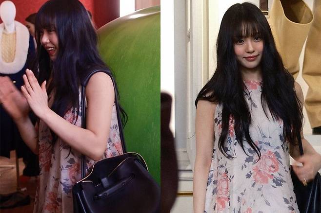 로에베 앰배서더로 재발탁된 그녀는 하늘하늘한 꽃무늬 맥시 원피스로 청순하면서도 몽환적인 분위기를 완성하며 런웨이 밖에서도 남다른 존재감을 뽐냈다.