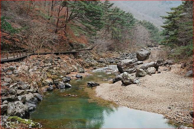 길 위에서는 계곡 물소리가 끊이지 않고, 숲 사이로 스며드는 빛이 계절마다 다른 표정을 만들어냅니다. 무엇보다도 구름다리와 무지개다리에서 내려다보는 주자천과 기암괴석의 조합은 이 구간을 대표하는 장면입니다. 다리 위에 잠시 서서 바라보는 풍경만으로도 이 길을 걷는 이유는 충분해집니다.