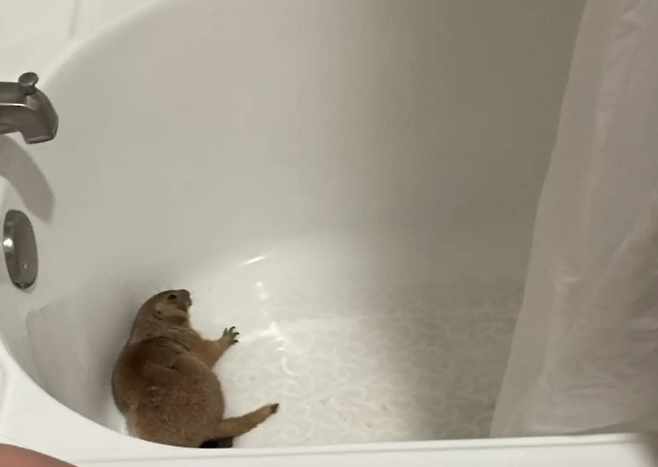 "방에 들어가자마자 그들의 웃음을 자아낸 것은 다른 손님이 실수로 예약한 것을 발견했다는 것이었습니다 — 욕조에 피난을 찾은 프레리 독이었습니다,"와일드 웨스트 야생동물은 페이스북 게시물에서 썼습니다.