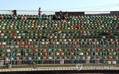 epa11811182 Workers paint the seats at Rawalpindi Cricket Stadium in Rawalpindi, Pakistan, 07 January 2025. The 2025 ICC Champions Trophy will be hosted in Pakistan from 19 February to 10 March. Matches will take place at three venues in Pakistan - Rawalpindi, Karachi, and Lahore - while at least four games will be held at the Dubai International Cricket Stadium. The tournament will kick off with Pakistan facing New Zealand on 19 February in Karachi. EPA/SOHAIL SHAHZAD