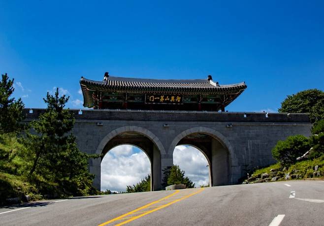 드라이브의 하이라이트는 이 길 끝자락에 나타나는 ‘지리산제일문’이다. 오도재를 넘어 도착하는 이 지점에서는 끝없이 펼쳐진 지리산 능선을 내려다볼 수 있다.