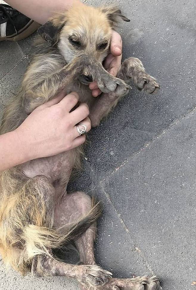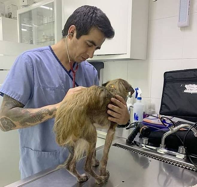 유기견 미구엘의 상태는 너무나 심각했어요. 쫄쫄 굶은 탓에 몸에는 앙상한 뼈만 남아 있었고 털은 여기저기 뜯겨 있었죠.