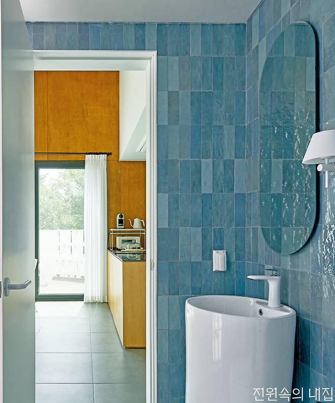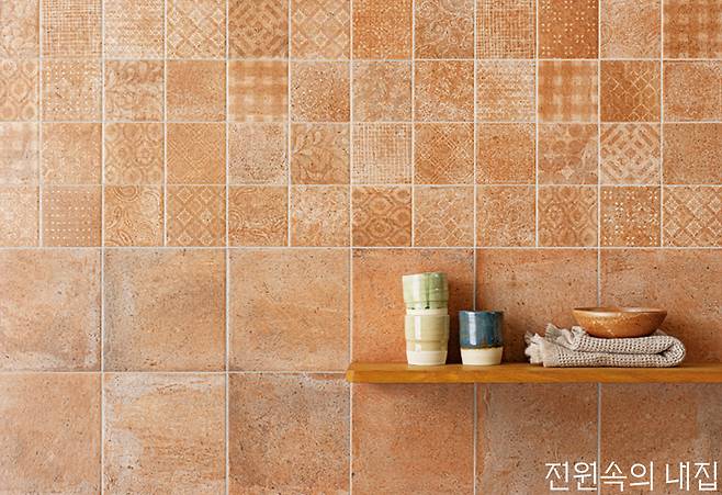 완전히 특수한 모양의 타일이라면 배치만으로 인상적인 분위기를 연출할 수 있지만, 보통의 사각형 타일을 활용해 이색적인 느낌을 주고 싶을 땐 같은 시리즈에서 다른 크기, 다른 디테일, 다른 컬러톤을 가진 타일을 사용해 재치있는 연출을 계획해보자.