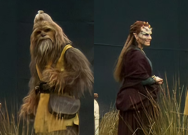 또한 '츄바카'의 종족으로 알려진 우키족 캐릭터 역시 모습을 드러내 반가움을 사는 와중에 사진은 다소 흐리지만 이정재의 제다이 착장이 그저 감탄만 나올 지경.
