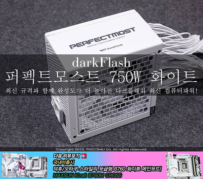 2025년 시작과 함께 Nvidia, AMD, 인텔 모두 차세대 그래픽카드를 출시 또는 출시예정을 앞두고 있습니다. 작년 하반기에 인텔/AMD 모두 차세대 CPU가 나왔기 때문에, 사실상 이제 최신 CPU와 그래픽카드로 조립 PC를 맞추려는 소비자들이 늘어나는 시기라 할 수 있죠. 그래서, CPU와 그래픽카드의 전력공급을 뒷받침해 주는 파워서플라이에 대한 관심이 그 어느 때보다 높습니다. 그리고, 이때를 맞춰 파워서플라이 제조사들도 신제품을 선보이고 있죠. 국내 PC 케이스 시장에서 인지도가 높은 다크플래쉬(darkFlash) 역시 이번에 파워서플라이 가이드 ATX 3.1 최신 규격에 맞춰서 최신 파워서플라이 제품을 출시했습니다. 바로, 퍼펙트모스(PMT) 시리즈. PC케이스만큼 자주 신제품을 선보이는 건 아니지만, 시기에 맞춰서 다크플래쉬하면 떠오르는 가성비로 이번에 퍼펙트모스 시리즈 파워서플라이를 선보인 만큼 관심이 높다 할 수 있습니다. 그래서, 이번 시간에는 다크플래쉬의 퍼펙트모스트 750W 80Plus 골드 풀모듈러 ATX3.1 화이트를 한 번 만나보도록 하겠습니다.