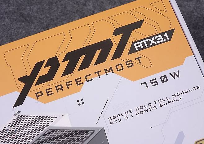 제품 패키지부터 살펴보면, 제품 박스는 전체 비닐밀봉처리까지 적용되어서 소비자입장에선 좀 더 판매 제품에 신뢰를 가질 수 있게 했습니다. 그리고, 박스 전면에는 모델명 퍼펙스모스트의 약자 PMT 문구과 함께 ATX 3.1 규격과 용량 표기, 풀-모듈러 문구를 확인할 수 있는데, 이번 퍼펙트모스트 시리즈는 750W와 850W 2가지 용량으로 국내시장에 출시되었으며, 모델명 아래 제품 이미지에서 미리 확인할 수 있듯이 색상도 화이트와 블랙 2가지로 출시되었죠. 참고로, 다음 시간에 850W 블랙을 만나볼 예정입니다. 그리고, 전면 아래에는 추가로 ATX 3.1 규격 표시 외에 PCIe 5.1 지원, 10년 무상보증기간, 80Plus 골드등급 표시를 확인할 수 있는데, 이번 퍼펙트모스트 시리즈는 한국 시장에 더 적극적인 지원을 해주고 있습니다. 원래 글로벌시장 기준으로 무상 보증시간은 5년인데, 국내시장에는 이보다 2배 긴 10년 무상 보증은 지원해주고 있죠.