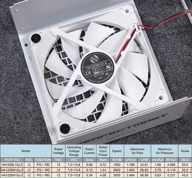 그럼, 다크플래쉬 퍼펙트모스트 750W 80Plus 골드 풀모듈러 ATX3.1 화이트 파워서플라이를 시스템 구성을 해서 사용해보는데, 그전에 기본 작동 그러니깐 각 전압의 출력상태를 확인해보면, 최신 인텔 파워서플라이 가이드(2.1a) 기준 범위에서 안정적으로 출력되는걸 확인할 수 있습니다. 그리고, 앞서 언급했던 후면에 배치된 에코팬 모드는 사용자가 환경에 따라 선택할 수 있는데, 에코팬 모드를 켜면 30% Load 상황전까지는 팬이 작동하지 않습니다. 반대로 에코팬 모드를 끄면 전원이 들어오는 동시에 팬이 작동하죠. 물론, 팬 작동은 내부 온도에 따라 자동속도조절합니다.