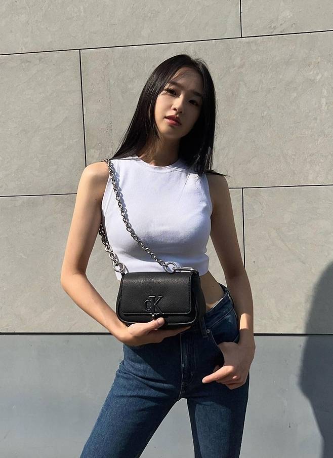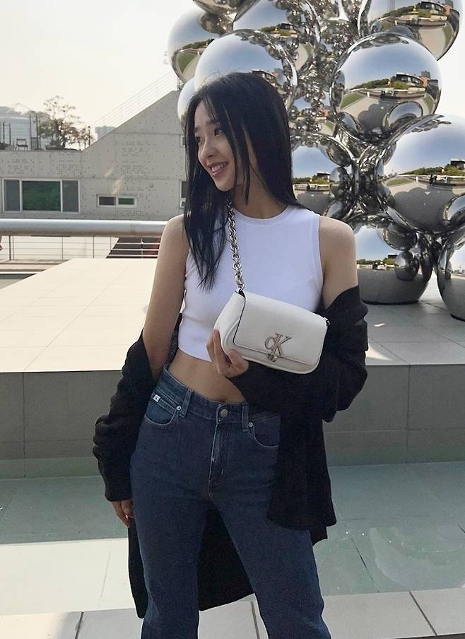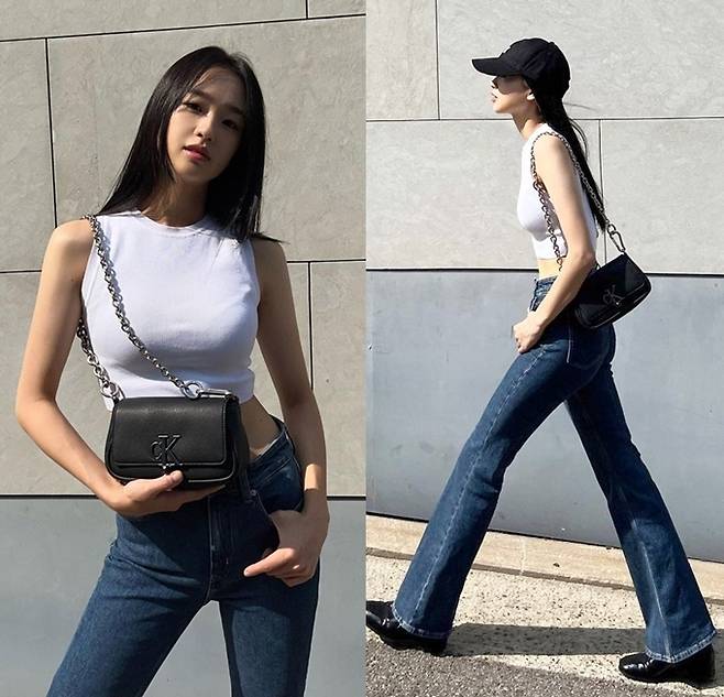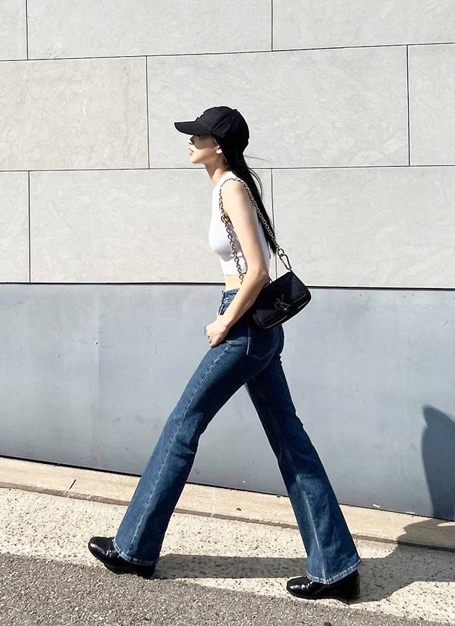 공개한 사진에서 손연재는 데님 팬츠에 허리와 어깨 라인이 드러난 화이트 트롭톱의 외출룩으로 운동으로 다져진 탄탄한 몸매와 섹시미를 뽐냈다.