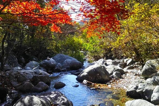 백운봉 기슭에 있는 사나사는 시원한 계곡으로도 유명한데요. 고요함과 함께 시원한 가을 풍경을 만들어 내는 사나사 계곡은 내면 어딘가에 있는 감성을 자극합니다.