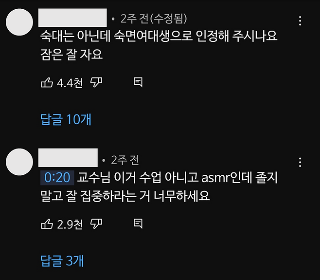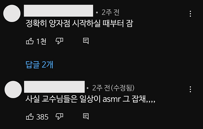 대학 사이에 교수님 ASMR 붐이 일었나 싶다.