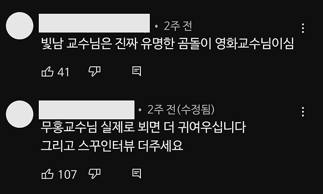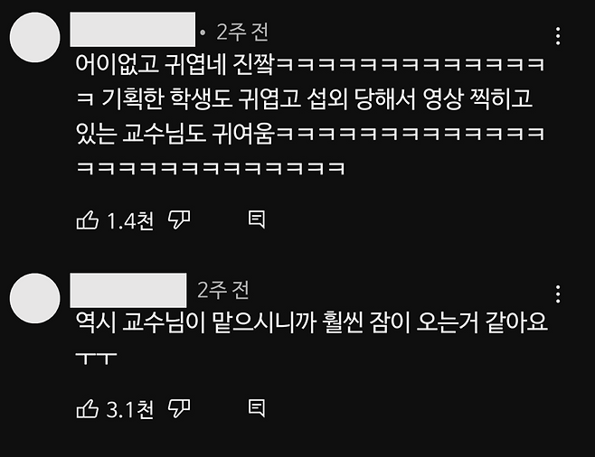 이미지 = 유튜브 ‘Sookmyung Women’s University 숙명여자대학교’ 채널 영상 중 댓글 캡처 (https://www.youtube.com/watch?v=fKz0powLcuU)