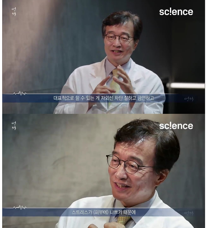 자외선(UVA, UVB)은 콜라겐 분해와 색소 침착, 잔주름을 유발합니다.
