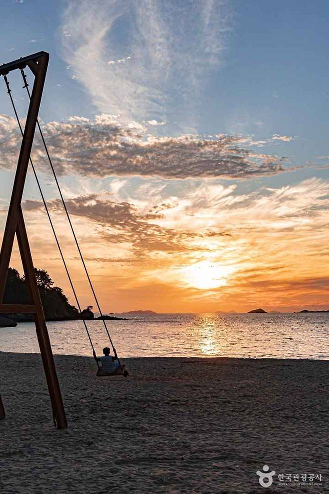 매년 여름 해수욕장 개장 시기에 맞춰 어린이들을 위한 물놀이터가 무료로 운영됩니다. 해수욕장 바로 옆에 설치된 이 놀이터에는 미끄럼틀, 분수대 등 다양한 놀이시설이 마련되어 있어 아이들이 안전하게 즐길 수 있습니다. 그늘막 아래에 돗자리를 펴고 보호자는 여유롭게 아이들을 지켜볼 수 있는 구조라 가족 여행객들의 만족도가 높습니다.