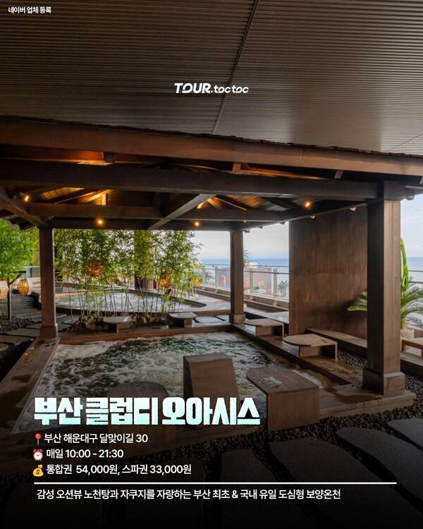 부산 해운대 바다를 바라보며 노천탕과 자쿠지를 즐길 수 있는 부산 클럽디 오아시스는 도심 속 휴식을 선사하는 보양온천입니다.