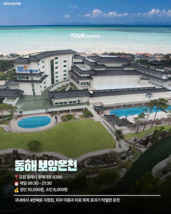 동해 보양온천은 도심에서 가까워 접근성이 뛰어나며, 피부 미용과 피로 회복에 효과적인 온천수로 인기입니다.
