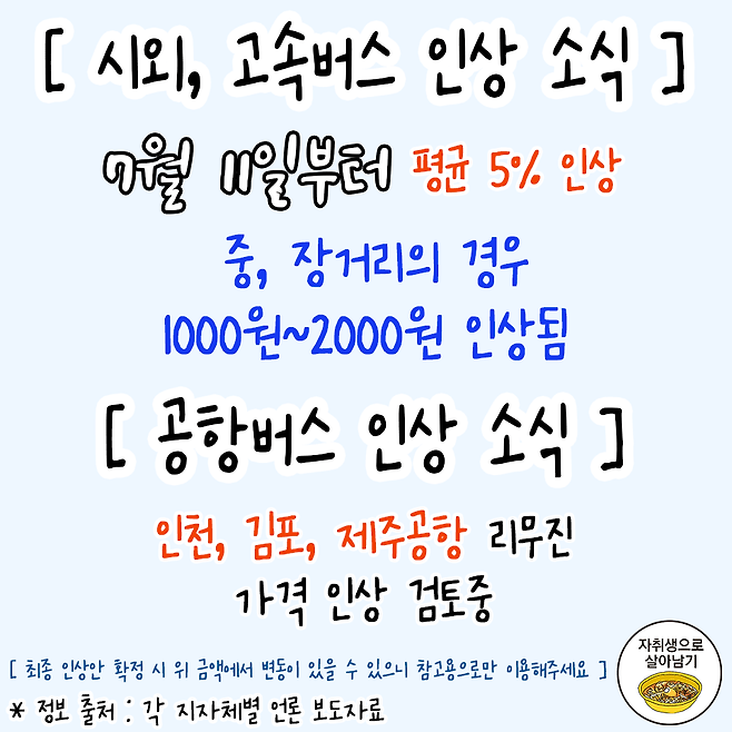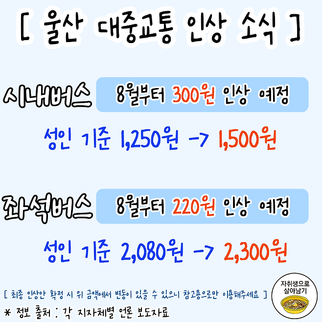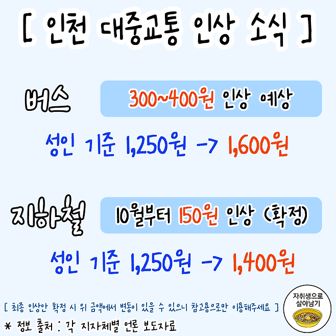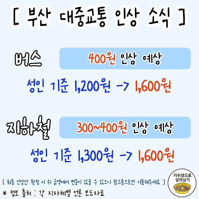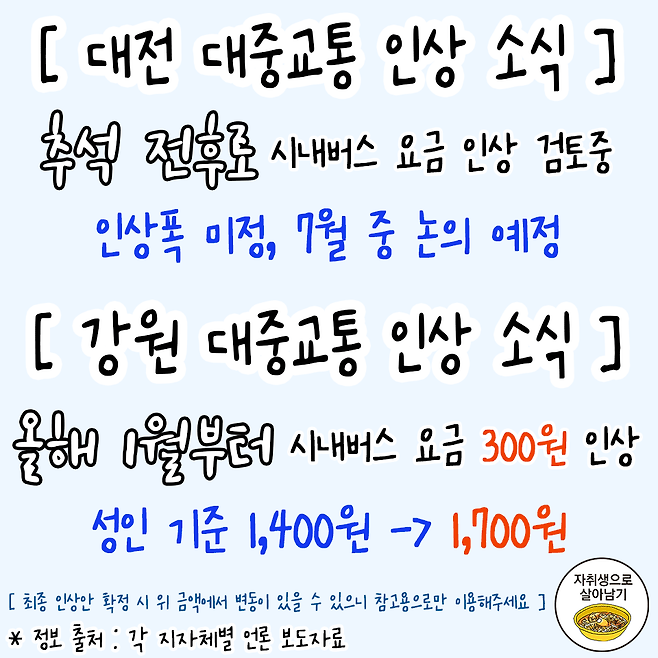 8월부터 오르는 지역별 대중교통 요금 정보