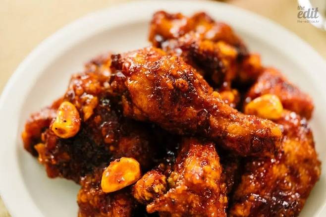 한쪽에 노트를 펴놓고 마치 와인 테이스팅 노트를 기록하듯 치킨의 맛을 써 내려갔다. 기존에 먹던 양념치킨과는 확실히 다르다. 불향, 파, 마늘 등 향신채의 향이 은은하게 올라오고, 발효콩으로 만든 장과 고추장 등을 활용한 소스 덕분에 맛이 단층적이라 느껴지지 않는다. 몇 겹의 레이어를 쌓아 올린 정성이 느껴진다. 이런 음식이라면 에일이나 스타우트 같은 맥주보다는 깔끔하고 청량한 라거와 어울릴 것 같다. 단맛이 강하지 않은 하이볼과 페어링해도 좋겠다.